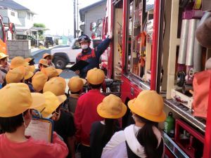 社会の「くらしを守る」の学習で、消防署の人はどのような仕事をしているのかを学びました。授業で学んだことを、実際に消防署で見てさらに学びが深まったかと思います。